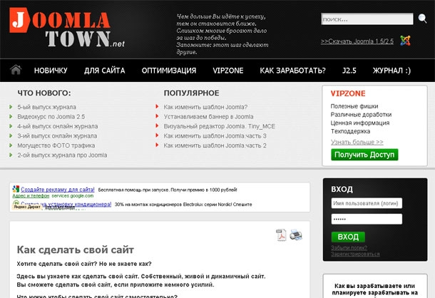 Это сайт о создании сайтов) Обучение по работе с CMS Joomla.